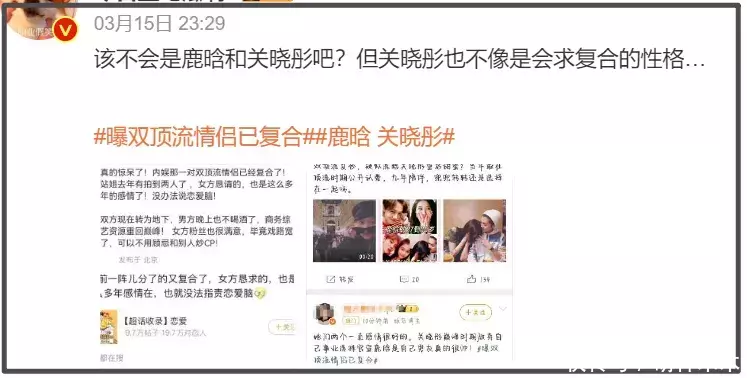 25年8月份的时候,还有博主爆料双顶流复合,还说是前一阵儿分了的。不少网友到现在还在猜测是鹿晗关晓彤,两人还因此被推上了热搜。